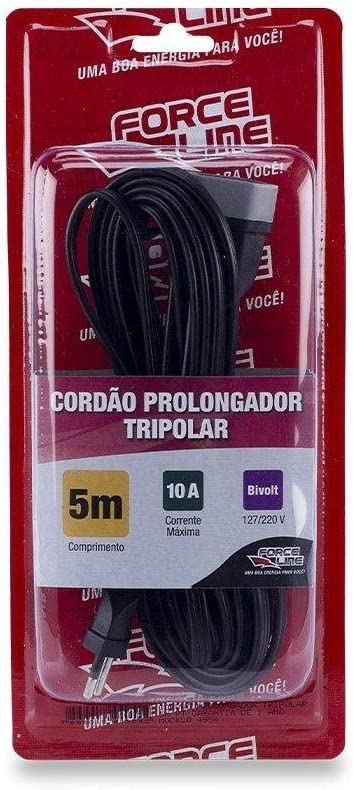 CORDAO PROLONGADOR TRIPOLAR 5M - PRETO FORCE LINE