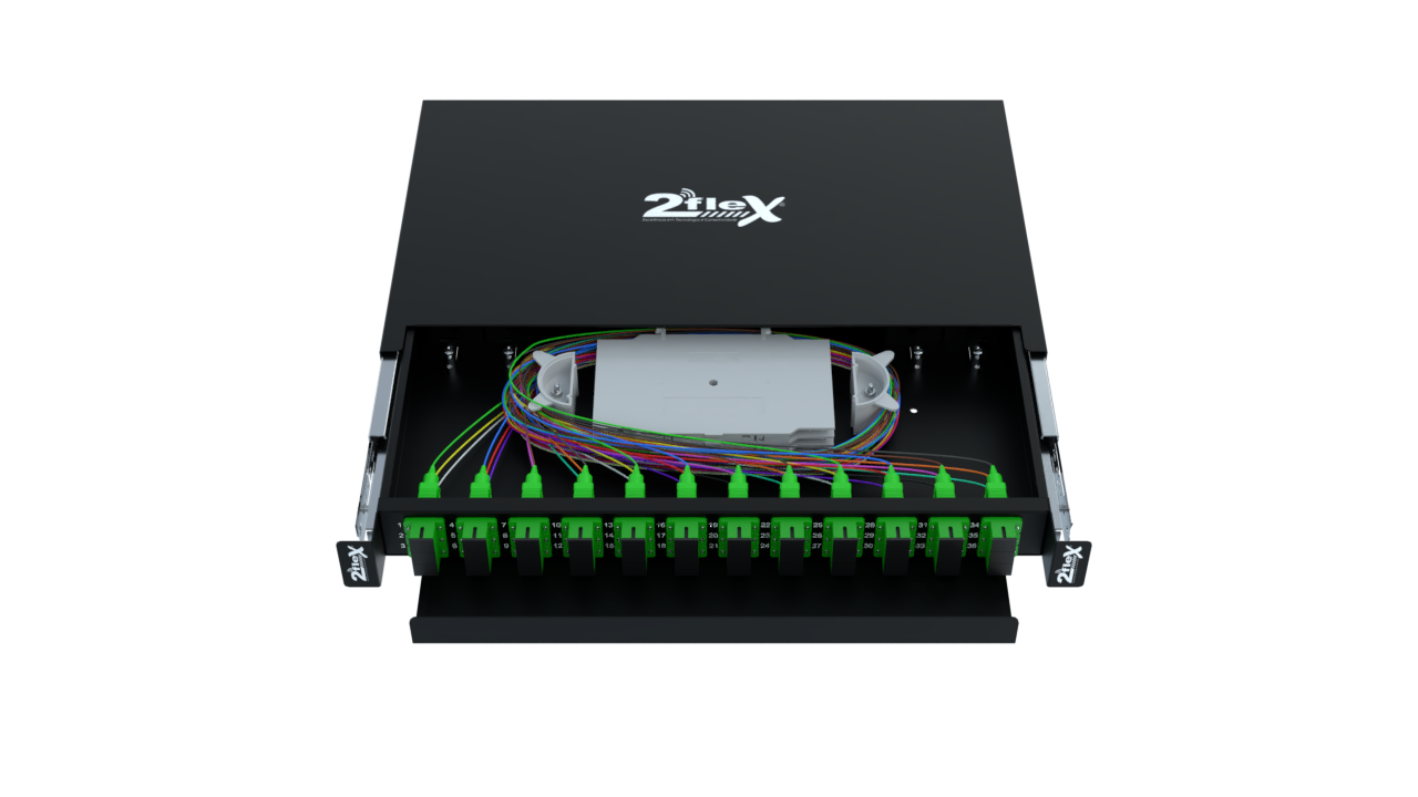 O Distribuidor Interno Óptico 36FO SC/APC 2Flex Telecom ( 2F-FDIO-36-APC) é apropriado para utilização em rede de telecomunicações. Pois contém bandeja retrátil que permite fazer as conexões através de bandeja interna em cabo óptico. Acompanha uma régua em seu painel frontal com adaptadores ópticos já instalados e régua frontal para acomodação dos cordões ópticos, além do sistema de vedação inibir a entrada de água, poeira e até mesmo insetos. Possui pinos guia para fixação dos cabos ópticos, bandejas para acomodação dos protetores de fusão óptica, borracha de vedação nas 4 entradas dos cabos principais localizadas na parte traseira do gabinete. Ideal para organização e acomodação das fibras ópticas no Data Center.