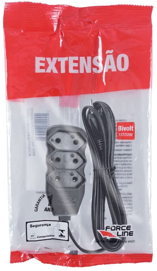 EXTENSAO 3 TOMADAS SLIM BIPOLAR PRETO 5,0M FORCE LINE